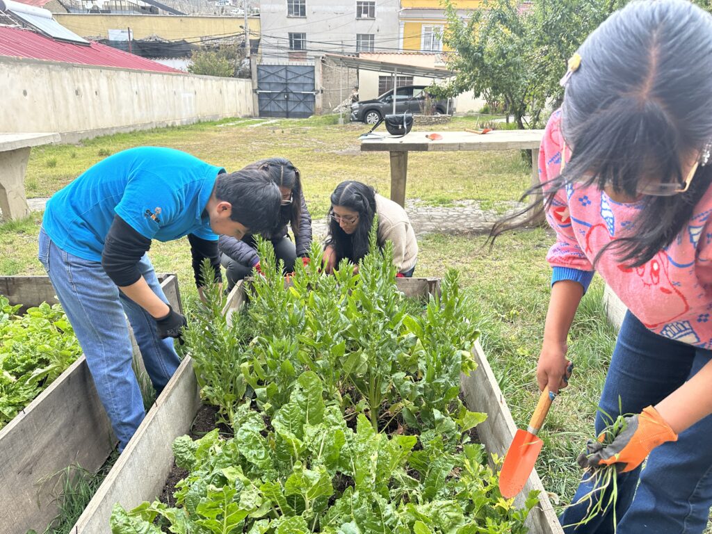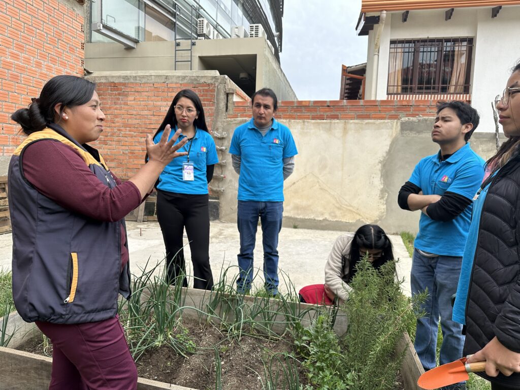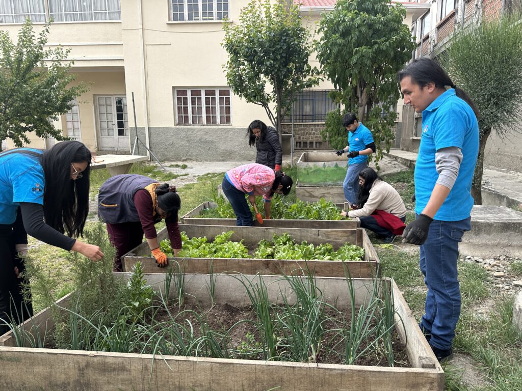 Amanda Ajata, responsable de la mencionada línea de acción, intercambió de manera competente información con el voluntariado juvenil ECOS del colectivo COMPA sobre la Encíclica del Papa Francisco. Además, explicó y demostró los beneficios de tener un huerto urbano de forma práctica, utilizando las platabandas instaladas en CEPROLAI para la producción de hortalizas en el lugar.