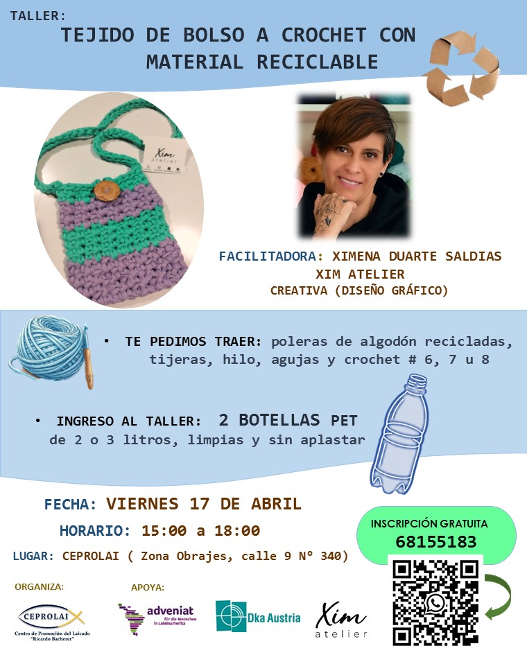 El Centro de Promoción del Laicado “Ricardo Bacherer” (CEPROLAI), a través de su línea de acción de Medio Ambiente liderada por Amanda Ajata Ramírez, organizó el Taller de tejido de Bolso a Crochet con Material Reciclable. Esta iniciativa busca mostrar experiencias prácticas de reciclaje y buenas prácticas de economía circular, en sintonía con la Ecología Integral.